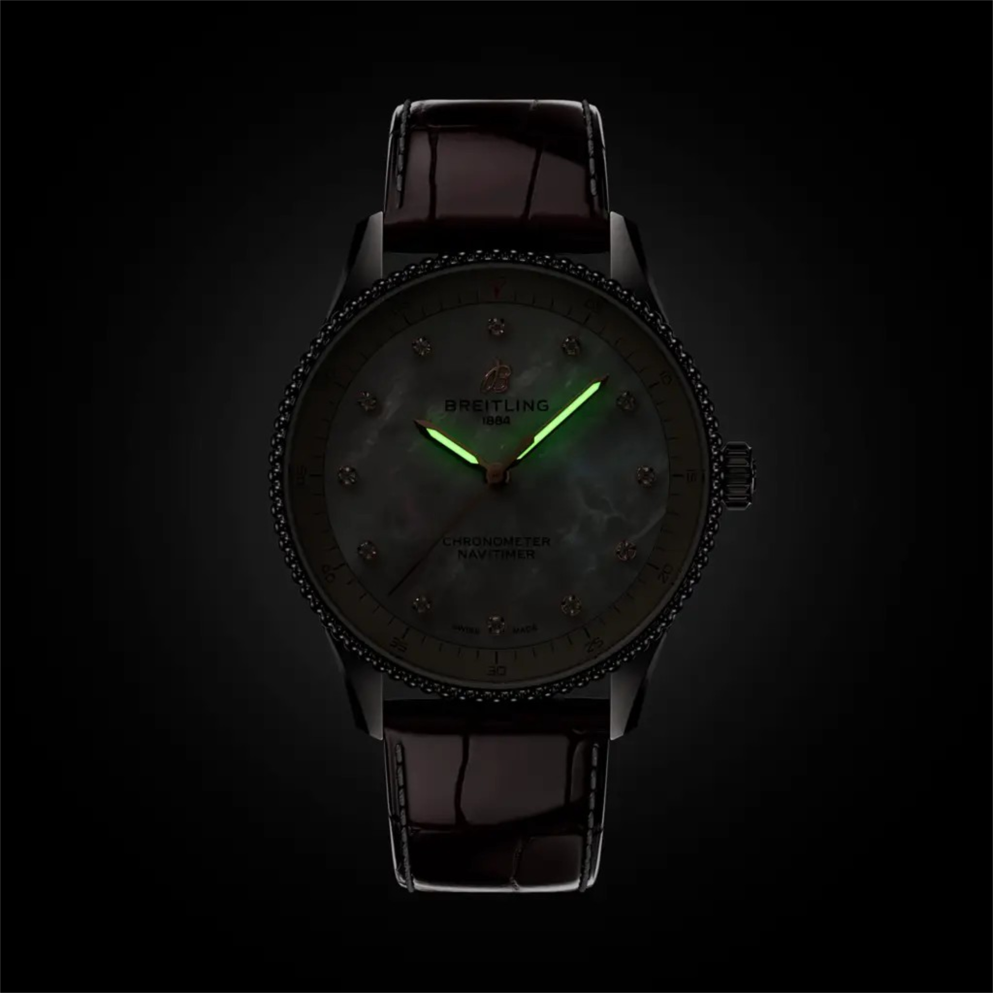 Ref. A77320E61A2P2 - Breitlings Ikone – für die Reise. Die Navitimer ist eine der bekanntesten Uhren, die je hergestellt wurden. Sie steht als eine der grossartigsten Uhren aller Zeiten auf den Sammlerlisten. Was 1952 als Instrument für Piloten begann, hat inzwischen eine tiefe Bedeutung für jeden, den dieser Zeitmesser auf seiner persönlichen Reise begleitet. Unsere Ikone kommt jetzt in den Grössen 36 und 32 mm für Frauen und Männer, die die Optik und Haptik einer Uhr mit kleinerem Durchmesser lieben. Während die 36-mm-Navitimer die Perlenlünette und den ikonischen kreisförmigen Rechenschieber aufweist, die der Navitimer ihr unverkennbares Aussehen verleihen, verzichtet die beeindruckende 32-mm-Variante auf den Rechenschieber zugunsten eines schlichteren Zifferblattdesigns, das auf den schlanken Durchmesser abgestimmt ist.