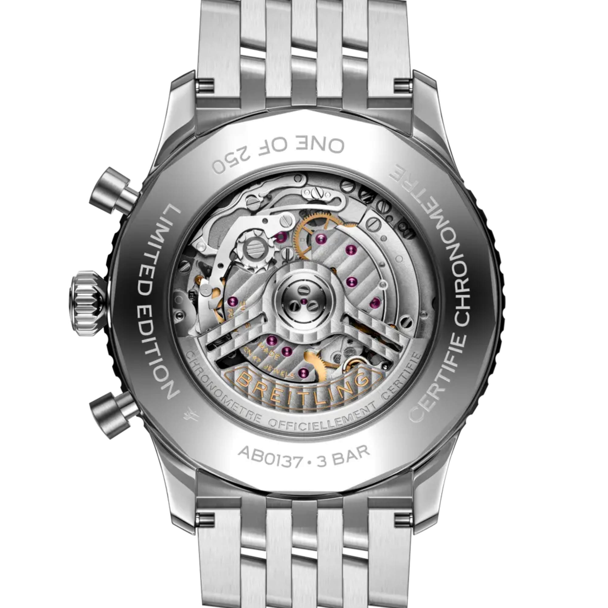 Ref. AB01376A1B1A1 - Zum 70. Geburtstag des legendären Zeitmessers von Breitling präsentiert die Marke eine neu gestaltete Kollektion, die sich durch ausdrucksstarke Farben, optimiertes Styling und unglaubliche Reisen auszeichnet. Seit bereits 70 Jahren erfreut sich die Original-Fliegeruhr von Breitling grosser Beliebtheit bei Piloten und Trendsettern gleichermassen. Sie wurde bereits von einem Astronauten im All und von den grössten Stars der Welt getragen. Definitiv DIE Zeitmesser-Ikone von Breitling. Breitling ehrt diese Legende mit der Lancierung einer neuen Navitimer, natürlich mit den klassischen Merkmalen, aber mit modernen Feinheiten.