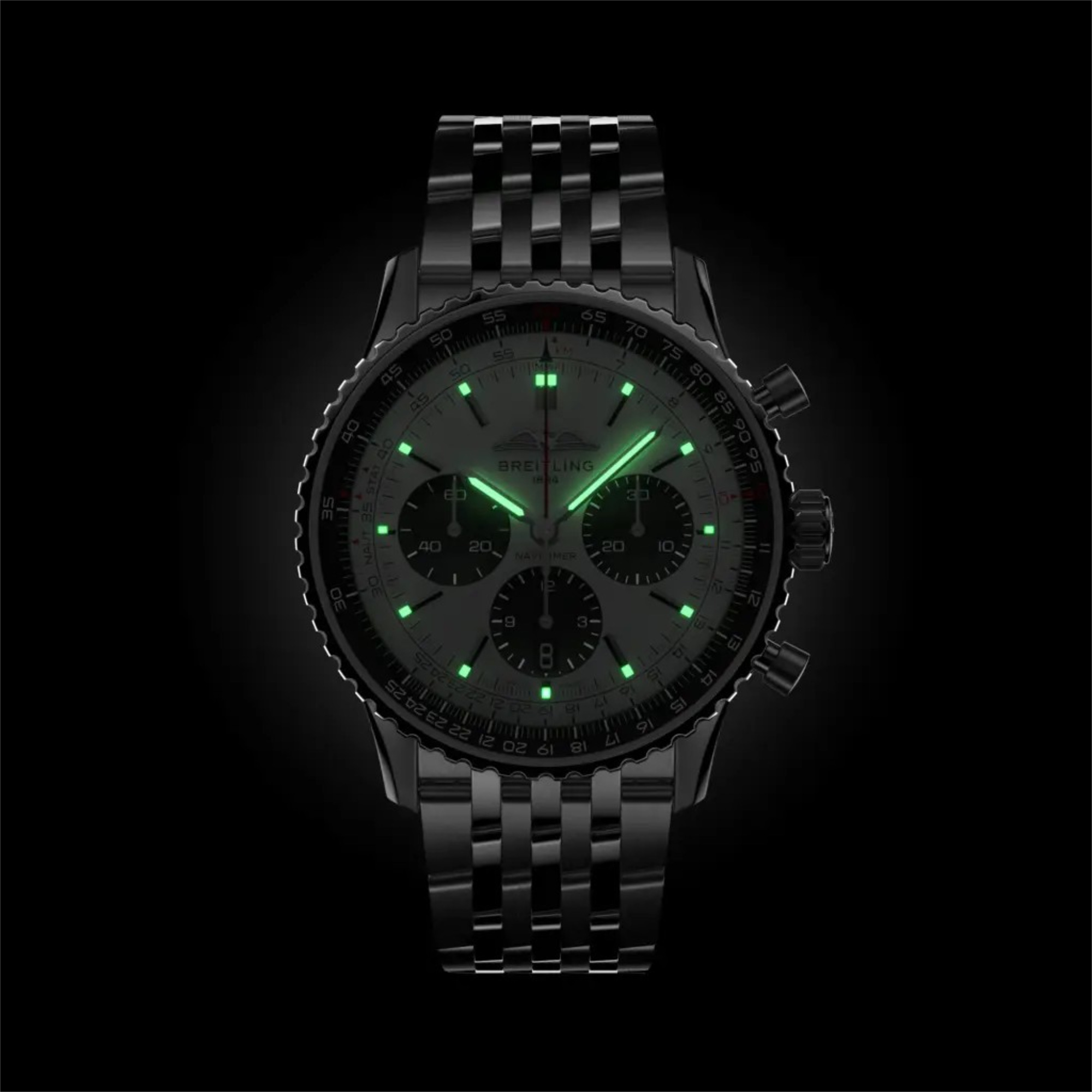 Silberfarben mit farblich abgesetzten Chronographenzählern und
