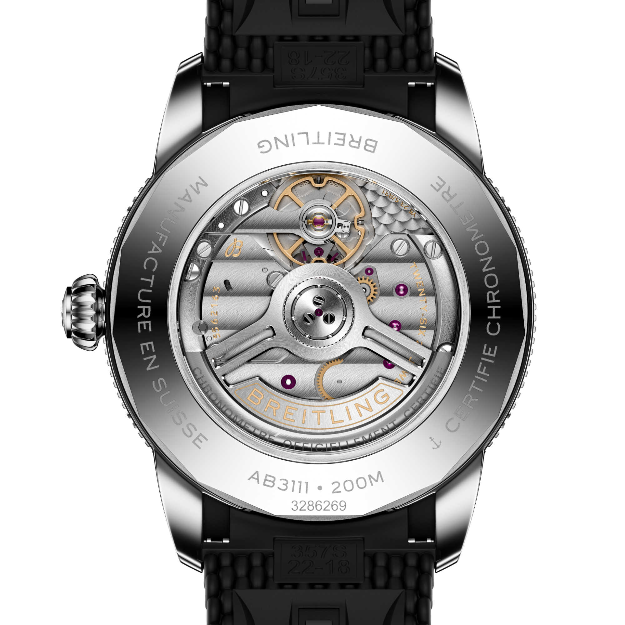 Auch heute noch ist diese Philosophie das Herzstück der Superocean Heritage. Die Seele der 50er Jahre, aber im neuen Kleid für die Gegenwart. Die neueste Superocean Heritage baut auf allem auf, was das Original unverwechselbar gemacht hat, und verfeinert es. Die Kollektion führt das Automatik-Uhrwerk B31 ein, Breitlings erstes exklusives Manufaktur-Kaliber mit drei Zeigern. Eine Lünette mit Keramikeinlage bietet außergewöhnliche Kratzfestigkeit, während die integrierten Armbänder aus Mesh-Metall oder Mesh-Kautschuk eng am Gehäuse anliegen und mit Faltschließen für ein sauberes, wasserdichtes Finish gesichert werden. Ein diskretes Datumsfenster auf sechs Uhr und die originalen Signaturzeiger– Pfeil für die Stunden, Speer für die Minuten – sorgen für Ablesbarkeit und Ausgewogenheit, über oder unter der Oberfläche.