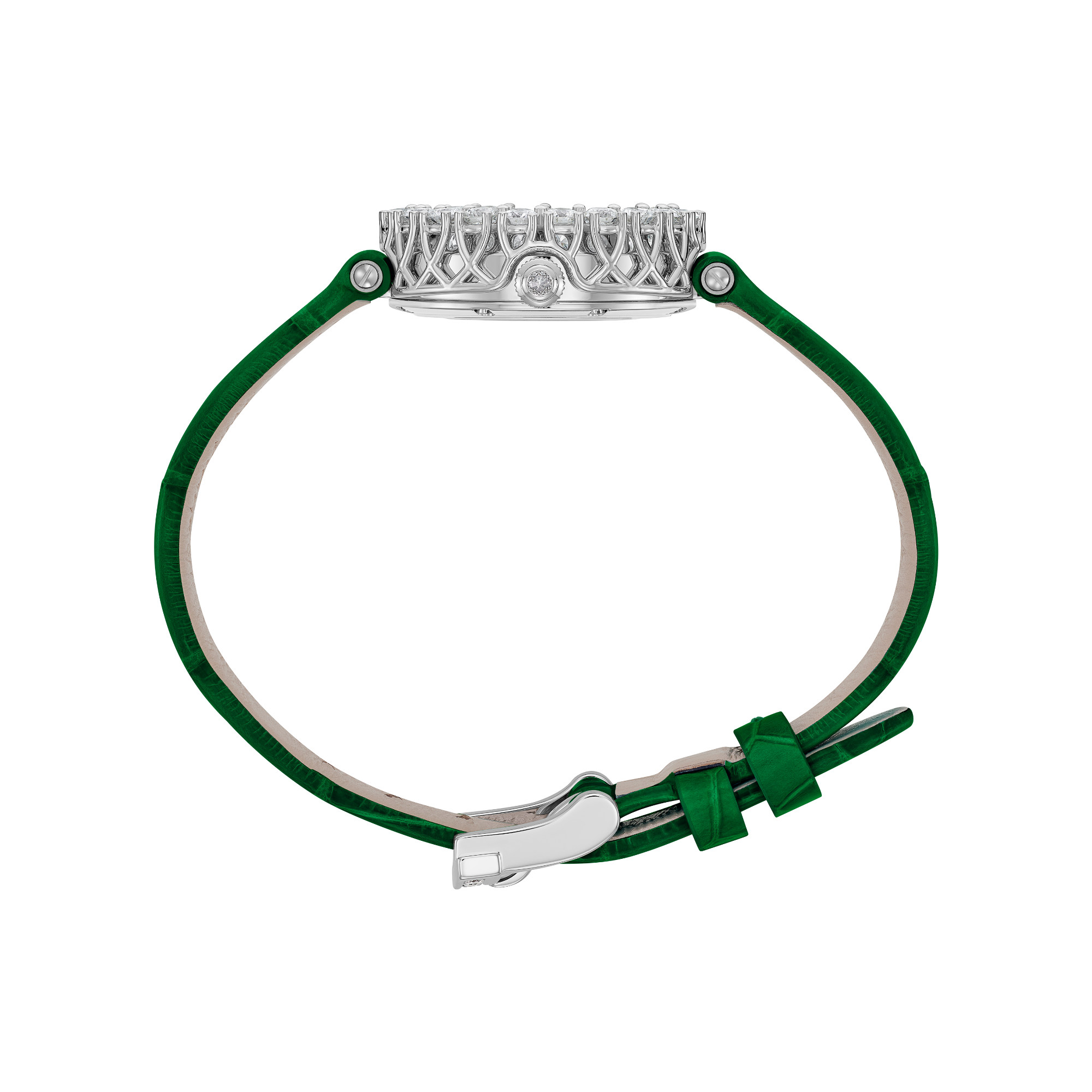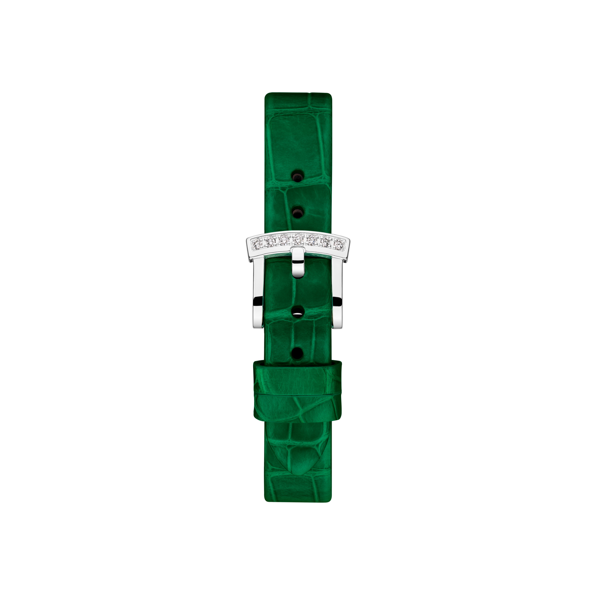 Grünes Lederarmband mit Dornschließe aus 18 Karat Weissgold