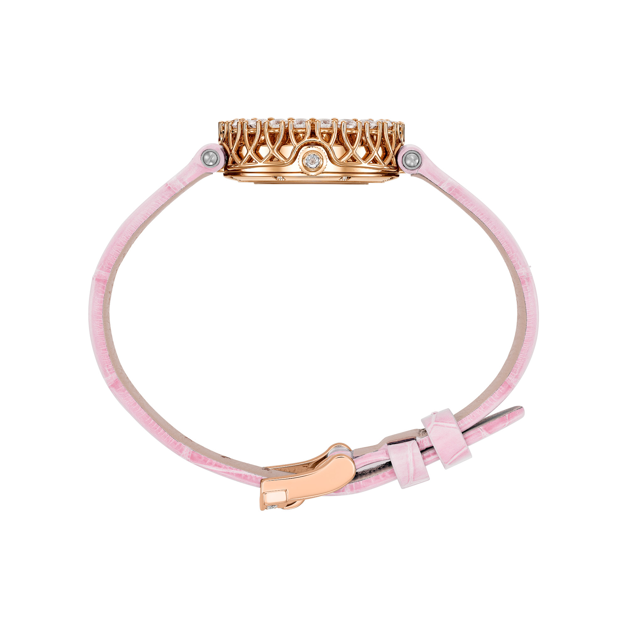 Rosa Lederarmband mit Dornschließe aus 18 Karat Roségold