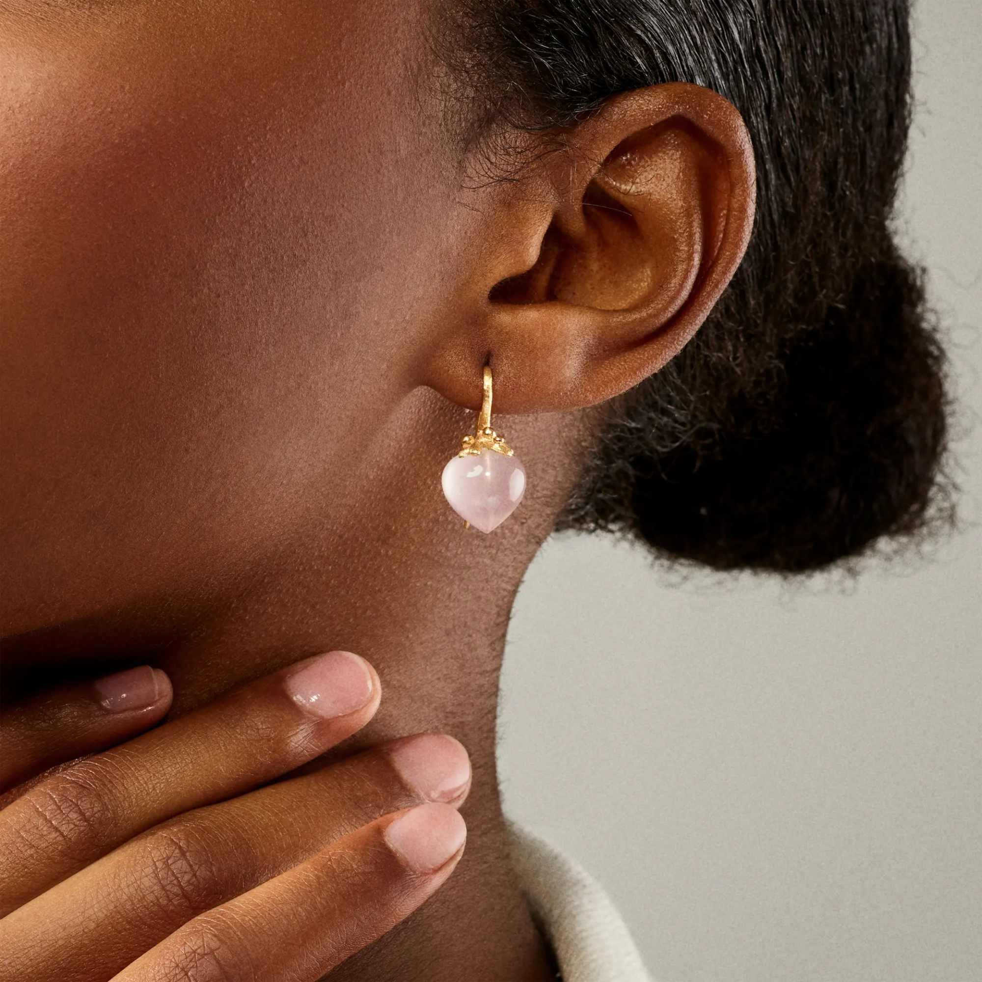 Charlotte Lynggaard hatte die Idee für diese Tautropfen nach einem frühen Morgenspaziergang durch den Wald, als von oben durch die Wolkendecke die Strahlen der Sonne durch die Bäume drangen und die klaren, zarten Tropfen zum Strahlen brachten. Aus der Ferne nimmt man alle Tautropfen als schimmernde Diamanten wahr, auf perfekten Zweigen von der Sonne zum Leuchten gebracht. Doch je näher man kommt, erblickt man die rauen Finessen der Natur und damit den gebürsteten Effekt der Krone jedes einzelnen Tautropfens. Der exklusive Tautropfen in Pavé-Fassung ist ein perfekt verarbeitetes, kleines Meisterstück des Kunsthandwerks. Der untere Brillant steht auf dem Kopf und bildet so die ideale, wiedererkennbare Tropfenform.
