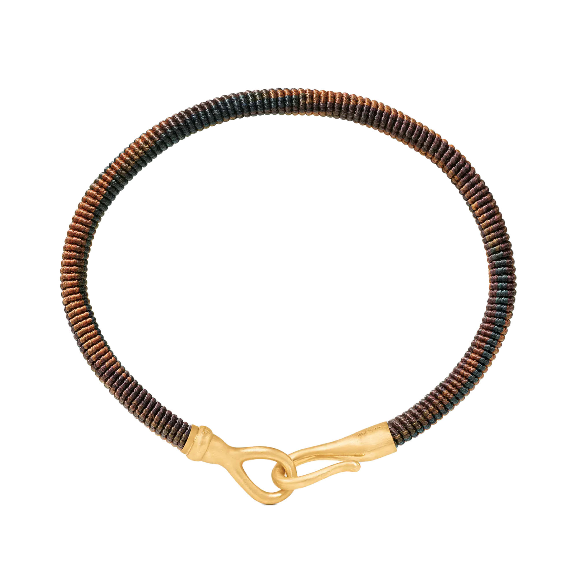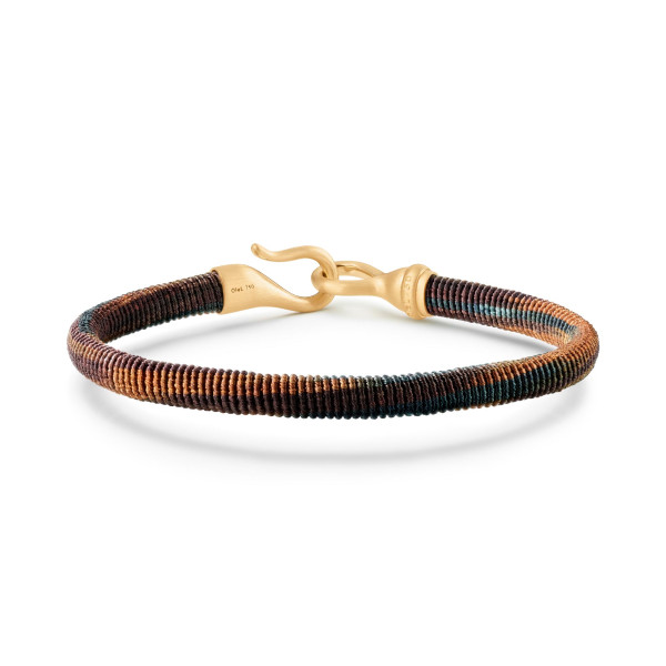 Ref. A2952-401 - Das von Charlotte Lynggaard entworfene Armband Life Maroon ist aus 11 Strängen handgeknüpft, die jeweils aus 6 handgefärbten Fäden gewebt sind. Der markengestempelte Hakenverschluss wird von Goldschmiedemeistern aus 18-karätigem, gebürstetem Gelbgold handgefertigt. Teil der Life-Kollektion.