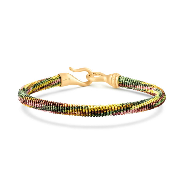 Ref. A2952-402 - Das von Charlotte Lynggaard entworfene Armband Life Plum ist aus 11 Strängen handgeknüpft, die jeweils aus 6 handgefärbten Fäden gewebt sind. Der markengestempelte Hakenverschluss wird von Goldschmiedemeistern aus 18-karätigem, gebürstetem Gelbgold handgefertigt. Teil der Life-Kollektion.