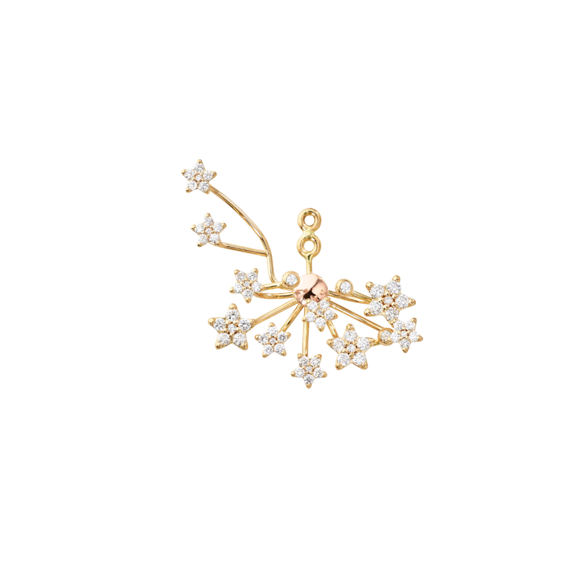 Ref. A3138-401 - Dieser von Charlotte Lynggaard entworfenen Shooting Stars-Ohrringanhänger ist aus 750/- Gelbgold gefertigt und mit 63 Diamanten von insgesamt 0,45 Karat tw/vs besetzt. Das Design stellt einen Sternenhimmel dar. Jeder Stern ist mit sechs Diamanten im Brillantschliff besetzt, die von der Oberfläche abgehoben sind, um Licht durch die Facetten dringen zu lassen. Die Goldoberflächen werden von Goldschmiedemeistern handpoliert. Der Shooting Stars-Ohrringanhänger lässt sich hinter dem Ohrläppchen an einem Shooting Stars-Ohrstecker anbringen und kann mühelos an unterschiedlichen Ohrringen befestigt und wieder abgenommen werden. Der Anhänger ist sowohl in linker als auch in rechter Ausführung erhältlich. Als Einzelstück verkauft. Teil der Shooting Stars-Kollektion.