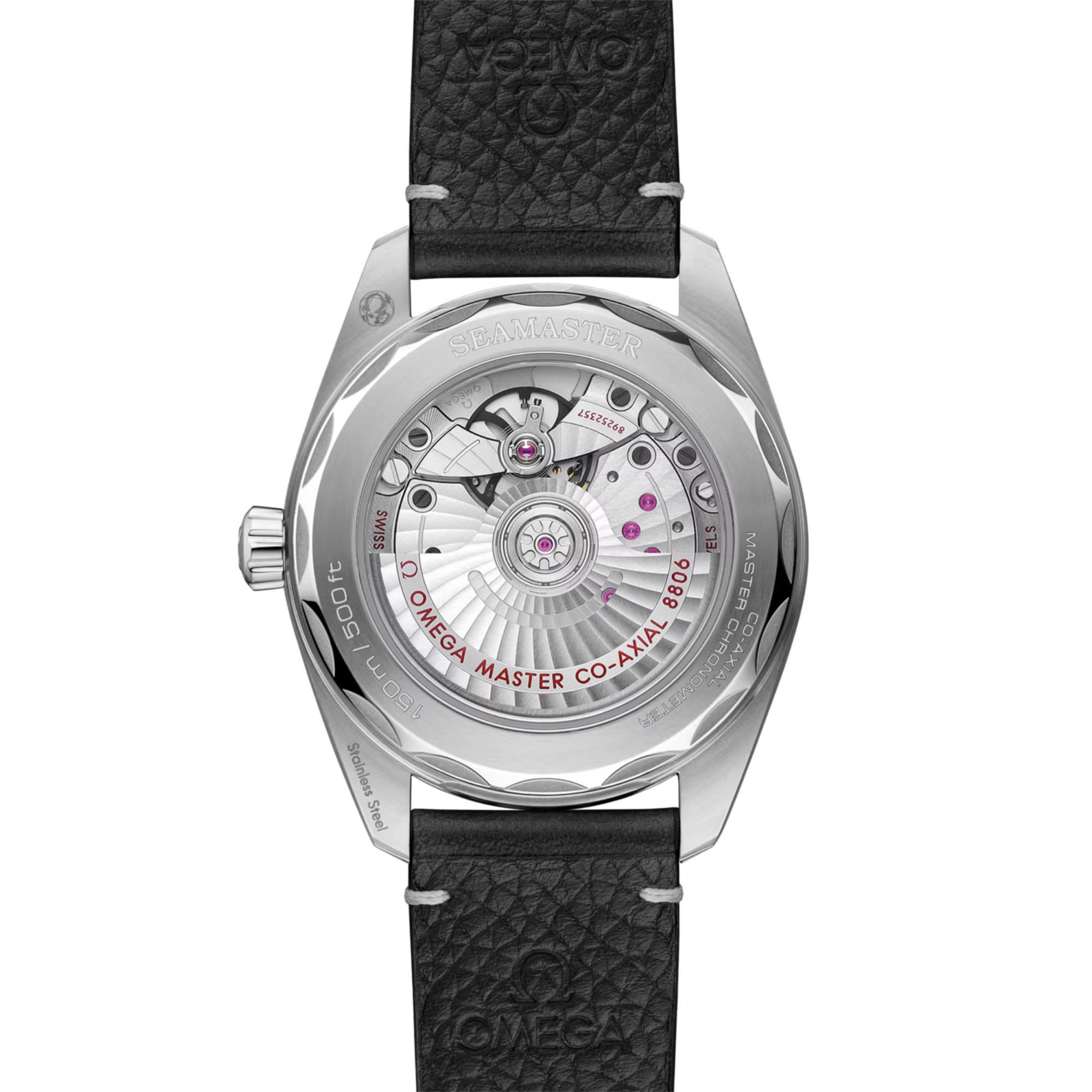 Auch setzt die Uhr das antimagnetische Erbe der Railmaster fort – dank des Co-Axial Master Chronometer Kalibers 8806. Das Uhrwerk ist bis zu 15.000 Gauß magnetresistent und kann durch das transparente Saphirglas auf dem Gehäuseboden bewundert werden.