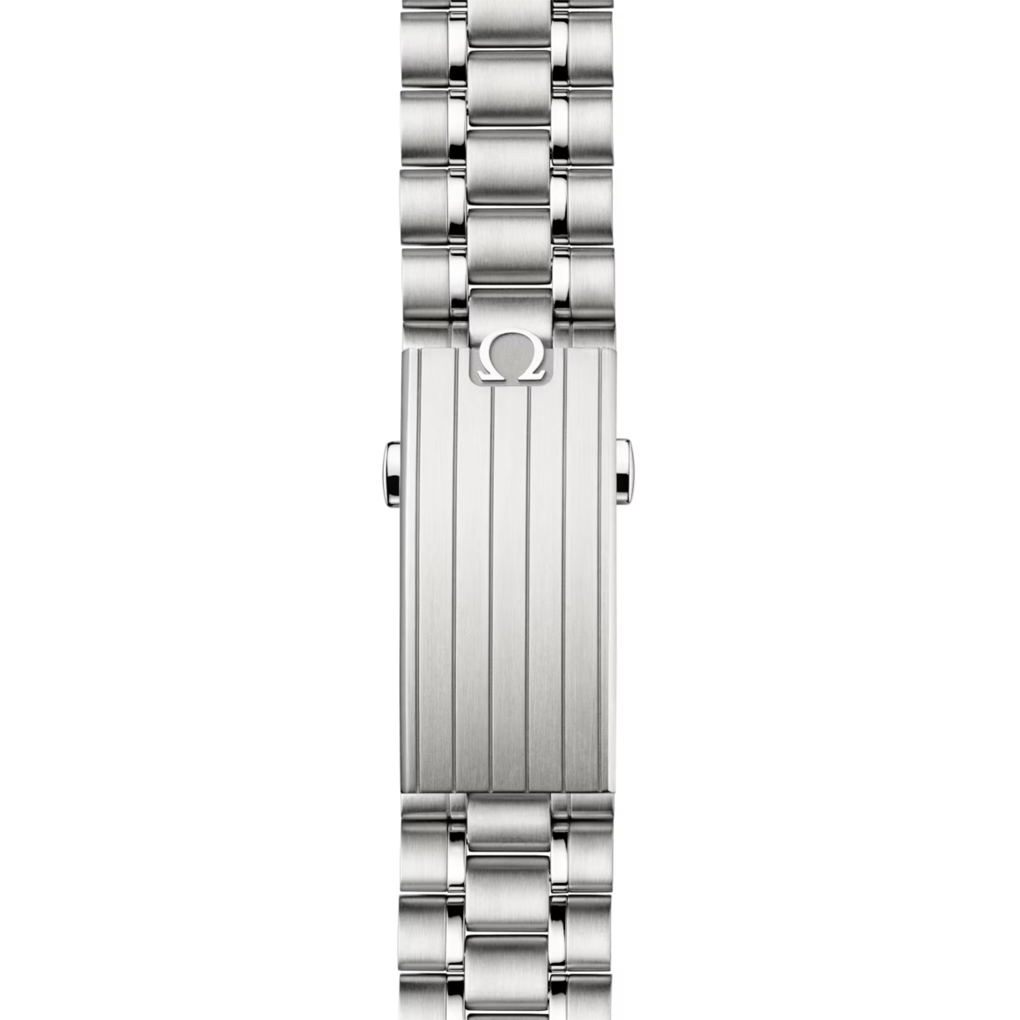 Dieses 42-mm-Modell verfügt über Saphirglas auf der Vorder- und Rückseite und wird mit einem polierten, gebürsteten Edelstahlarmband geliefert. Das Design ist inspiriert von der 4. Generation der Speedmaster, die auf dem Mond getragen wurde. Das schwarz lackierte, abgestufte Zifferblatt mit Doppelplatine wird durch weiß lackierte Hilfszifferblätter in rhodinierten Rahmen ergänzt. Zu den Details gehören das OMEGA Logo und die Indizes, Zeiger im Stil einer Moonwatch und der berühmte Punkt über der 90 auf dem schwarzen Keramiklünettenring.